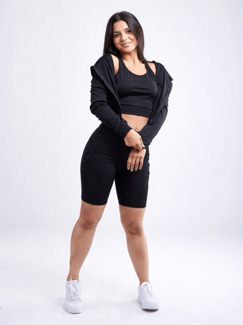 When the weather heats up, you need JupiterGear's mid-thigh high-waisted shorts with pockets featuring their super-cute criss-cross pattern to look and feel good while training, exercising, or just having fun in the sun! With the ultimate in support and comfort, these high-waisted shorts with their roomy pockets and Double-X detail on either side are perfect for all your activities.